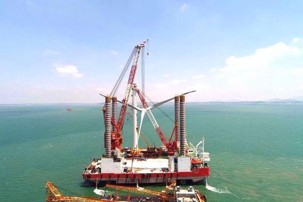 此次安裝完成的最后一臺風機采用風輪整體吊裝的方式,最大的難點為發(fā)電機需要單獨吊裝,同時還要專用吊具配合,以保證發(fā)電機與豎直面成6度的傾角,這對吊裝提出很高的要求。中鐵大橋局克服了施工當中海上季風等惡劣自然條件的影響,安全優(yōu)質(zhì)地完成了吊裝。